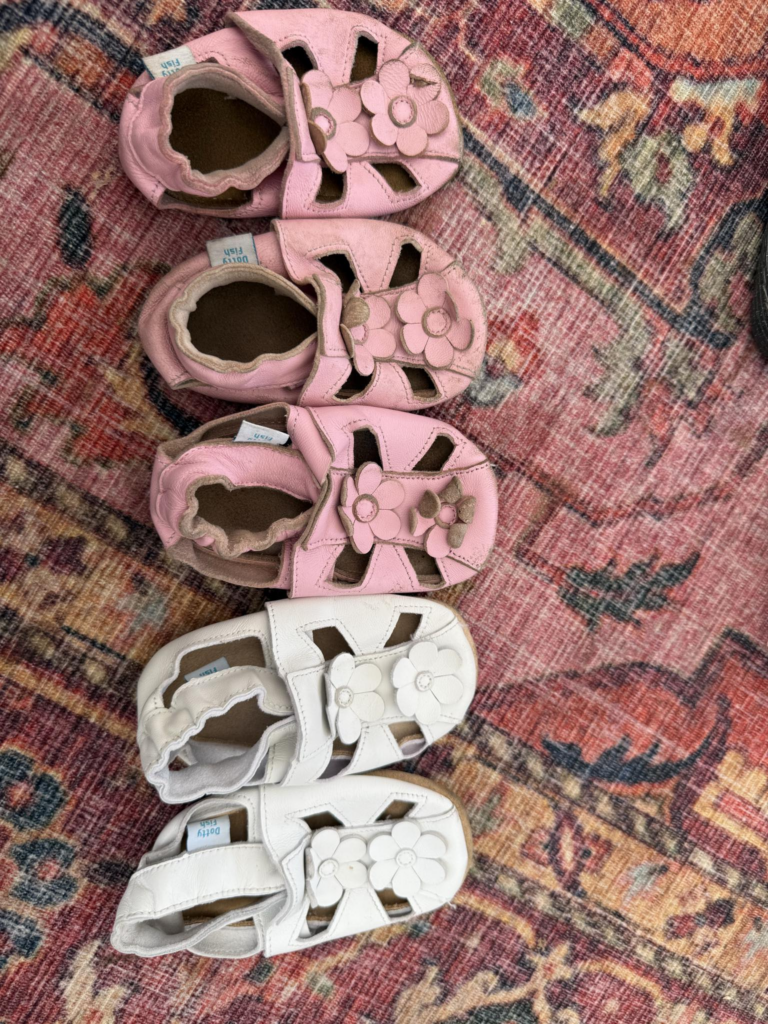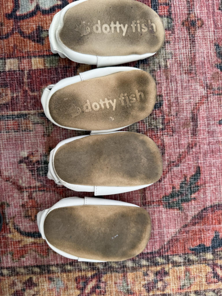 Dotty Fish schoenen waren de eerste schoenen die mijn kinderen droegen, en zelfs nu nog dragen ze ze dagelijks. Eén van mijn kinderen is 2 jaar oud en de ander 3,5 jaar.